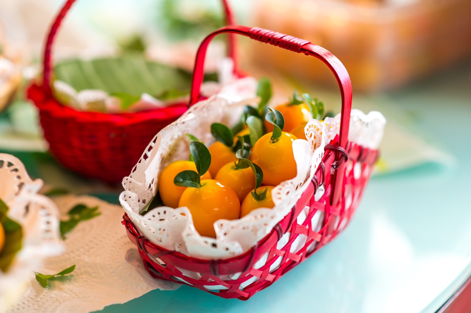 ส้มมงคล บรรจงปั้นแต่งจัดในตะกร้าสวยงาม สำหรับมอบให้คนที่เคารพรัก